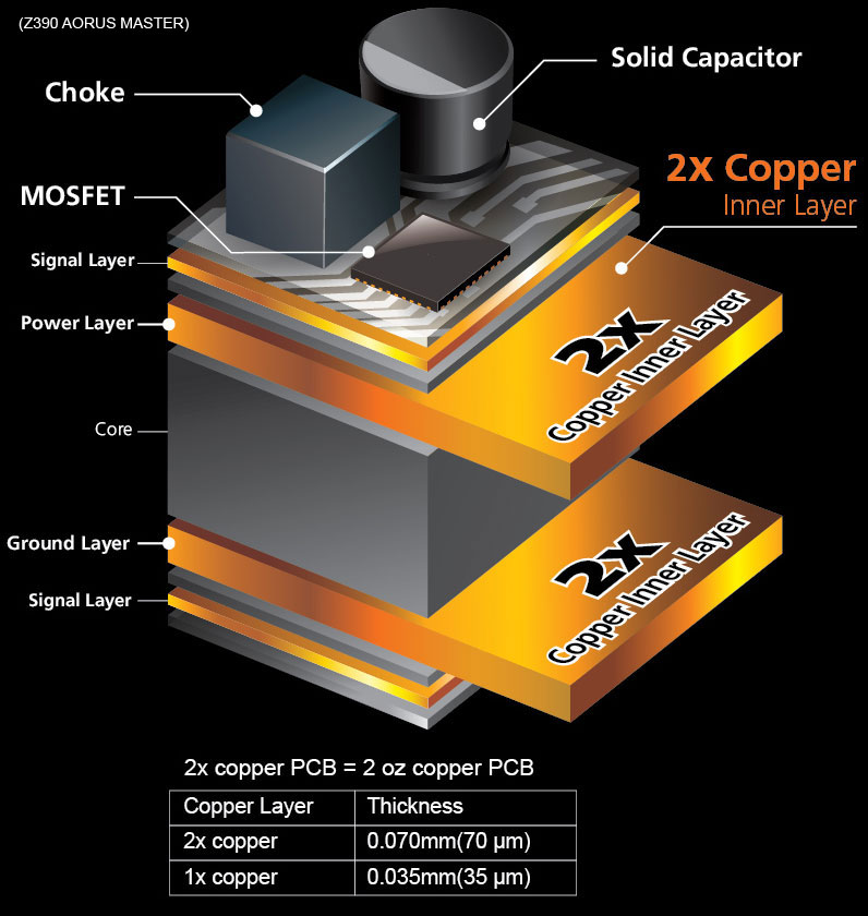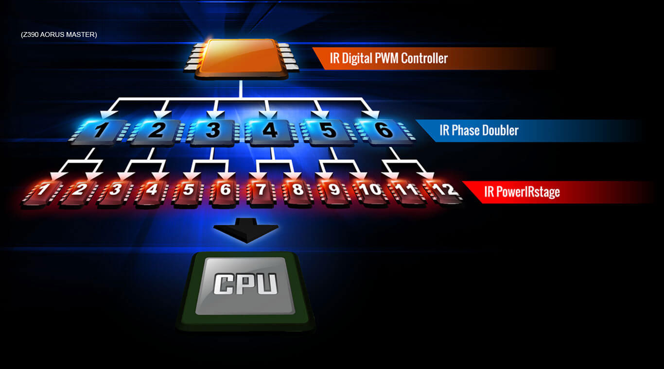 Z390 AORUS MASTER motherboard uses an all IR digital CPU power design which includes both digital PWM Controller and PowlRstage